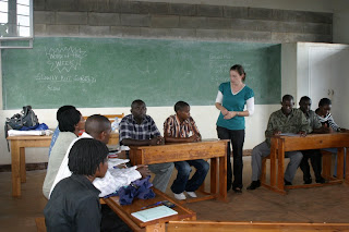Tuesday we went to Kibungo A, so it was nice to be in town. (I managed to buy electricity credit on lunch!) In the afternoon, I worked with two teachers to create some more simple visual aids. Today I was out “in the sticks” at another school. This school is understand by 6 teachers. Classes are huge. One class of P1 children had 63 children. The school they were in is “new” as they were learning under a tree for a few years. This one has benches but only a few of the benches have desks. I observed two lessons in the morning. One was a math class where students were comparing numbers using <, > or =. The children were having difficulty and so was the teacher. If the students got it wrong he would just ask them over and over again” Are you sure?” until they changed their minds! He did use visuals and had the students come up and hold the numbers. The child in the middle held the correct sing. It was a great way to get the learners involved. In the afternoon, we created a Days of Week visual, also, and I challenged them to come up with something for their classes. It’s a competition and the best one, when I come back in two weeks, wins! I also arranged an assembly on the grass for the children. We taught the children to walk in pairs to the meeting spot. And…I even taught P2! Yes folks ME (the junior high teacher) sucked it up and when in. Their teacher was in the training session and so – as they would – were a bit noisy and out of control. So I taught them a little rhyme about opening and closing their hands. I’m definitely not cut out for elementary but it’s a nice change. I guess it’s good to know my strengths.